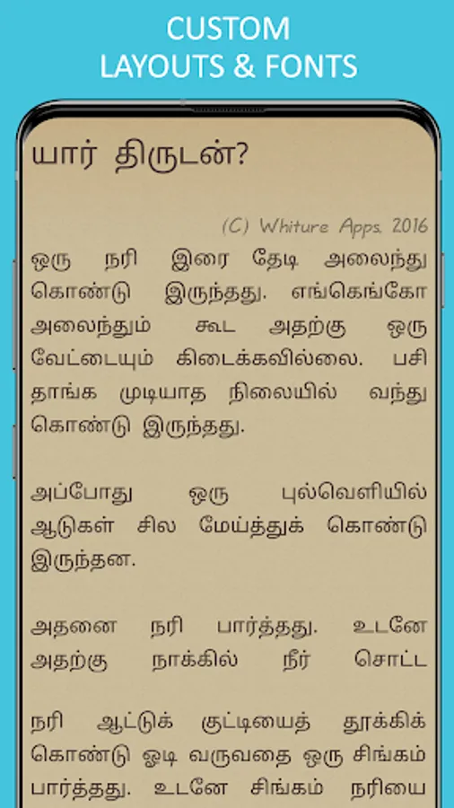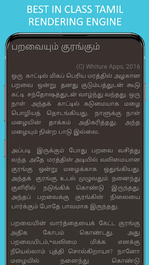 All these stories are rendered in a book-style with a clear Tamil text that makes the reading experience a bliss.