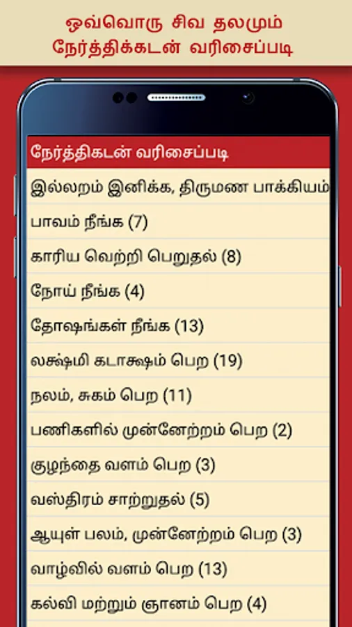 The app is organized in a way that will easily help you to find the temple you want. For e-g, if you are a private company working person, you want promotions in your office, not only hardwork, but also god's grace will help you. You can find a set of Shiva temples which will help you to do prayer specific for that purpose. Same is true for Students, Youngsters, People looking to get married etc.