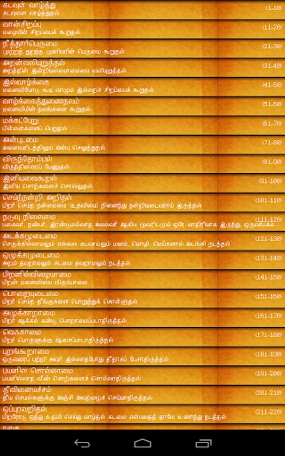 Let me know your feedback guys. Issues found on my earlier Thirukural app is fixed with this.