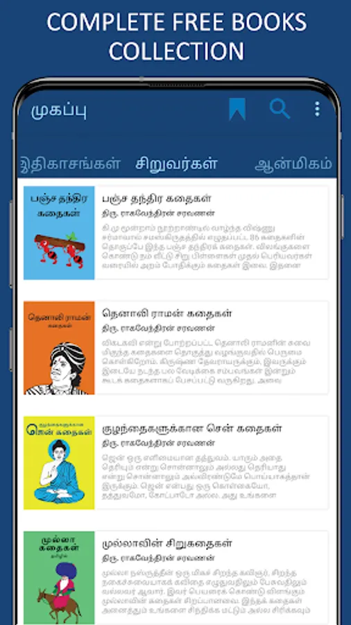 The app is a best android reader application in Tamil; you can see the Tamil texts appearing crystal clear with your android mobiles. Below are the features of this app,