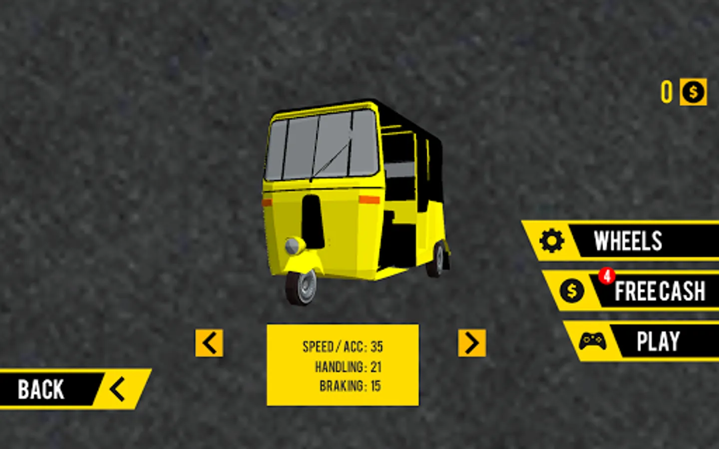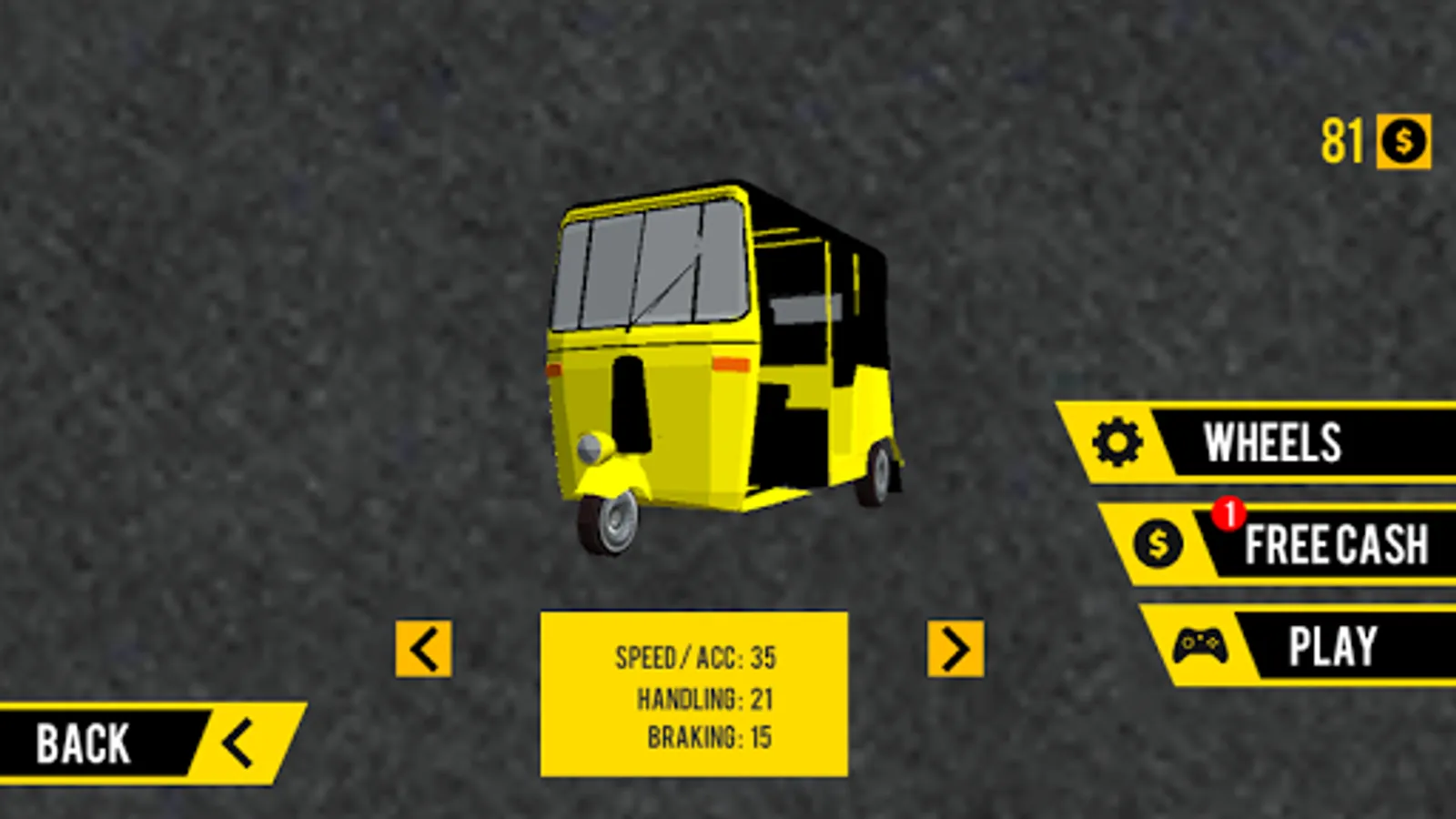 You have five different autos to upgrade from, as you earn thru by driving your tuk tuk on longer distances, you will earn more cash, which you can redeem to upgrade your autos with better braking, driving dynamics and wheels. The top speed ranges from 80 KMPH to 140 KMPH.