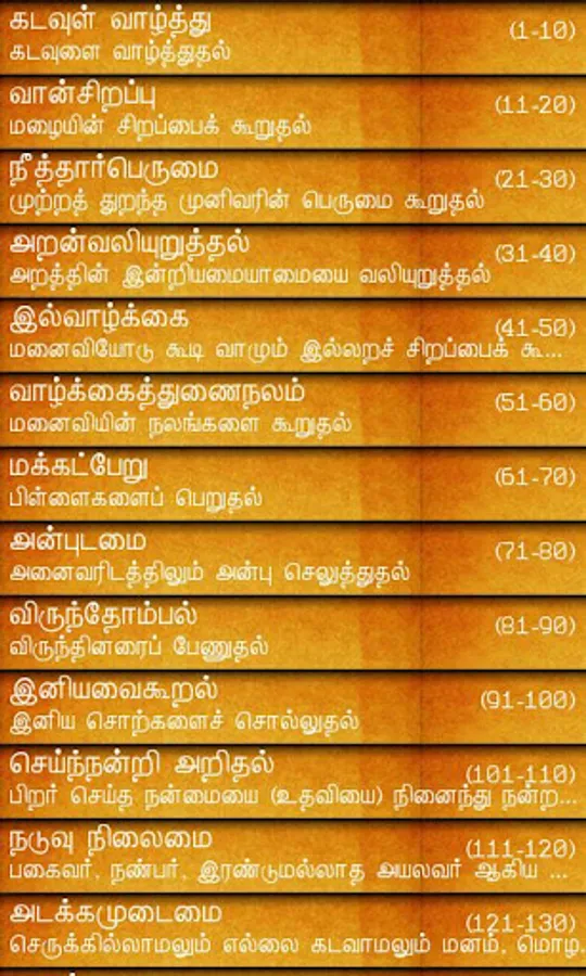 This is the best in class tamil android application you can experience with rich content, easy navigation & loads of features. We brought thirukural in such a best in class android application.