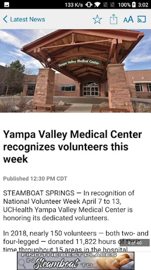 The Craig Daily Press is located in Craig Colo. which is 40 miles west of Steamboat Springs. The newspaper has roots back into the late 1800s and distributes 3500 copies Monday through Friday and 9500 copies Saturday in Craig and throughout Moffat and Rio Blanco County. The Craig Daily Press converted from a weekly publication to a daily paper Monday Feb. 11 1963. Craig is the seat of one of the largest geographic counties in Colorado which combines a rich tradition of the Old West with a new vision of economic growth. The area is home to a population that has demonstrated steady growth during the past decade with a growing retail base and some of the most productive coal mines in the world. In addition it is also known as the "big game" capital of Colorado as hunters from throughout the United States travel to Moffat County in the fall to hunt elk deer and antelope.