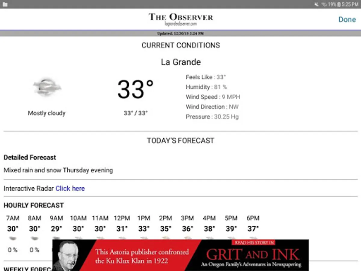 Since 1896, The Observer has been Union and Wallowa counties' news leader. The Observer provides distinctively local news, sports, information and advertising online every day and in print Monday, Wednesday and Friday. The Observer's main office is located in La Grande, the county seat of Union County, and home to Eastern Oregon University.