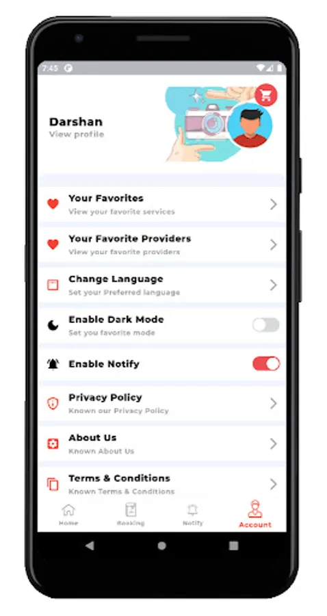 You can give review and feedback to service provider for service. On single click you can book require services at home without going outside. You can find all near by available services.