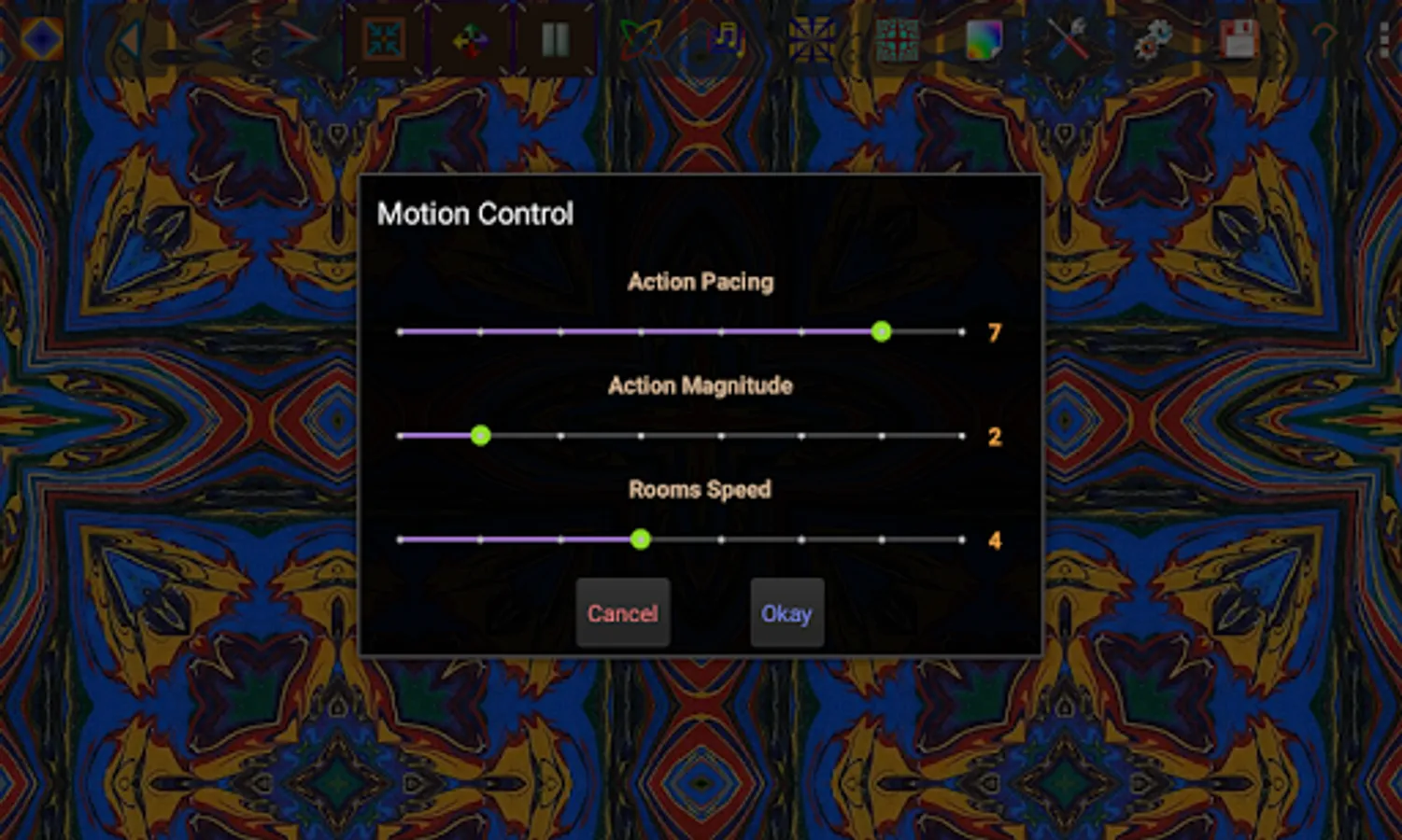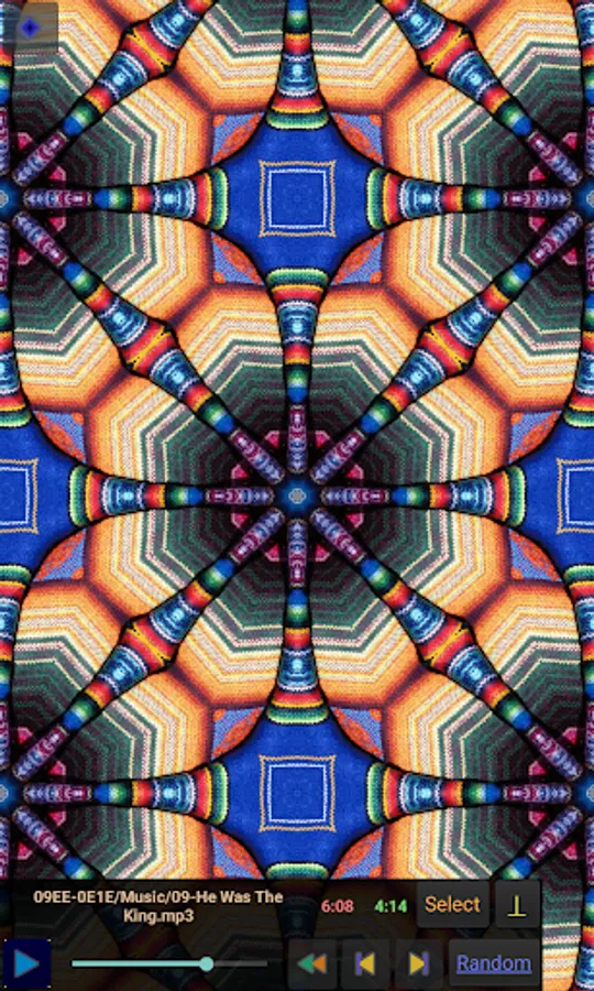 ** Music Player - Kaleider effects can optionally be accompanied by music chosen from the audio files stored on your device.