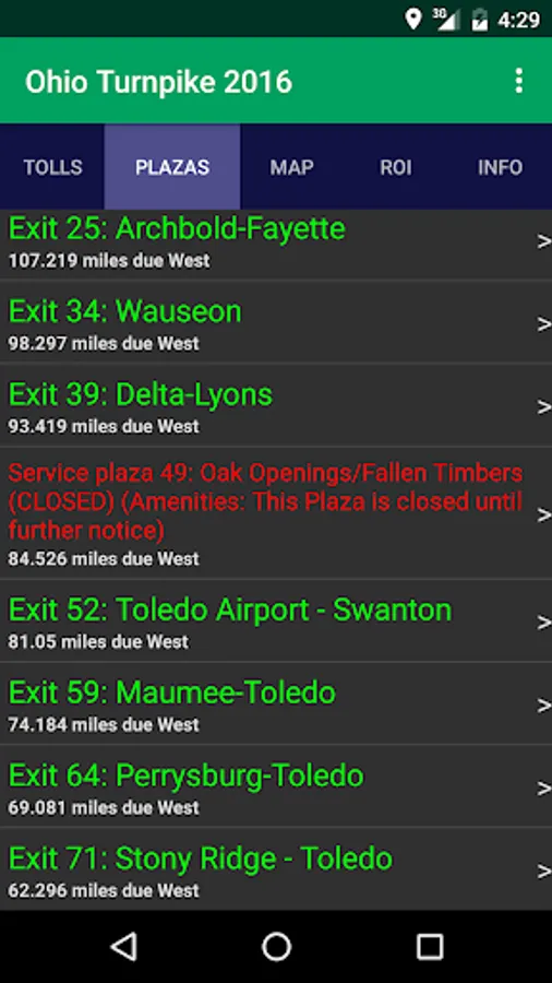 This is the Ohio Turnpike Edition of Whizkeys TollRoads, optimized to run on all mobile devices (phones and tablets). You can run it mostly offline (you may need to navigate the maps ahead of time to cache the map tiles).