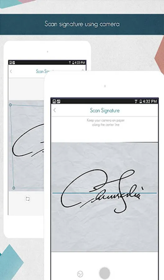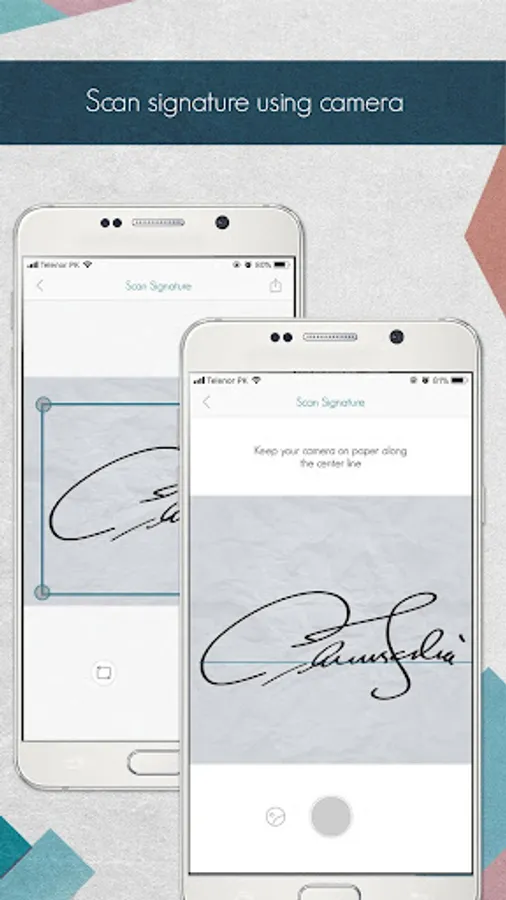 Scan your signature directly from your device camera. Simply keep your camera on paper and scan it.