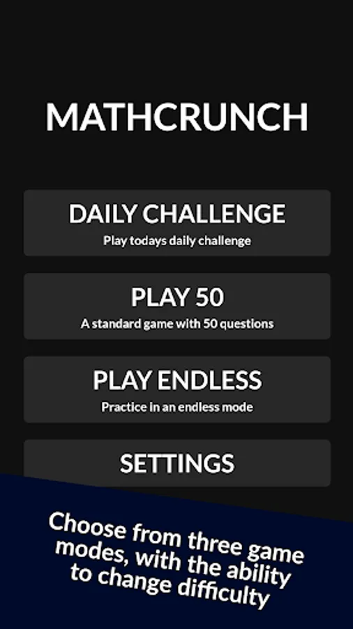 Other game modes include endless, which plays similarly to standard but has no set limit on the amount of equations, allowing you to practice without any pressure. Finally, Daily offers a challenge which is predetermined every day and allows you to compete with friends to see who can get the best score. This game mode will not acknowledge any changes to difficulty in settings, ensuring that the same questions are given to all players.