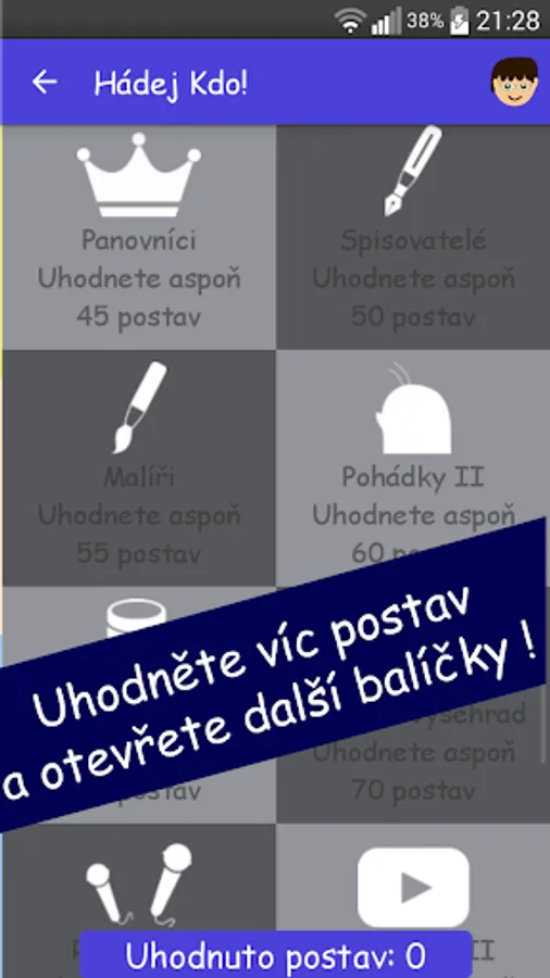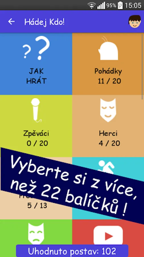 In this game you to test how much you know Czech personalities. Whether actors, singers, and characters from fairy tales, politician and YouTuber !! The entire game is made for the Czech player, with a predominance of Czech personalities who surely know. If you did not like either one of the pre-made packages you can create your own package with its own character! The aim of the game is to guess as many characters from the description of your teammates.