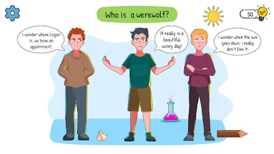 Diverse puzzle systems with many different topics and difficulties such as: who is the liar, who is the mother of the child, how to find the werewolf ... will make you think.