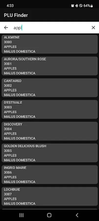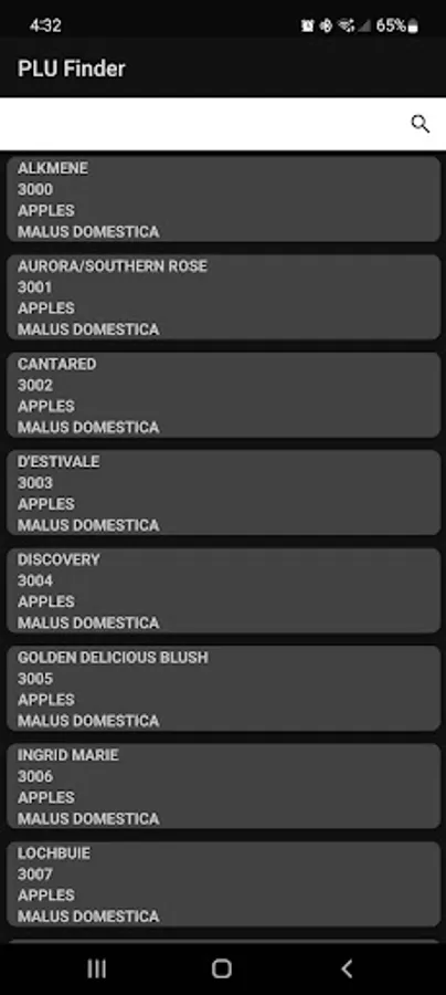 • Just search the name of a fruit or vegetable and quickly get the PLU of it.