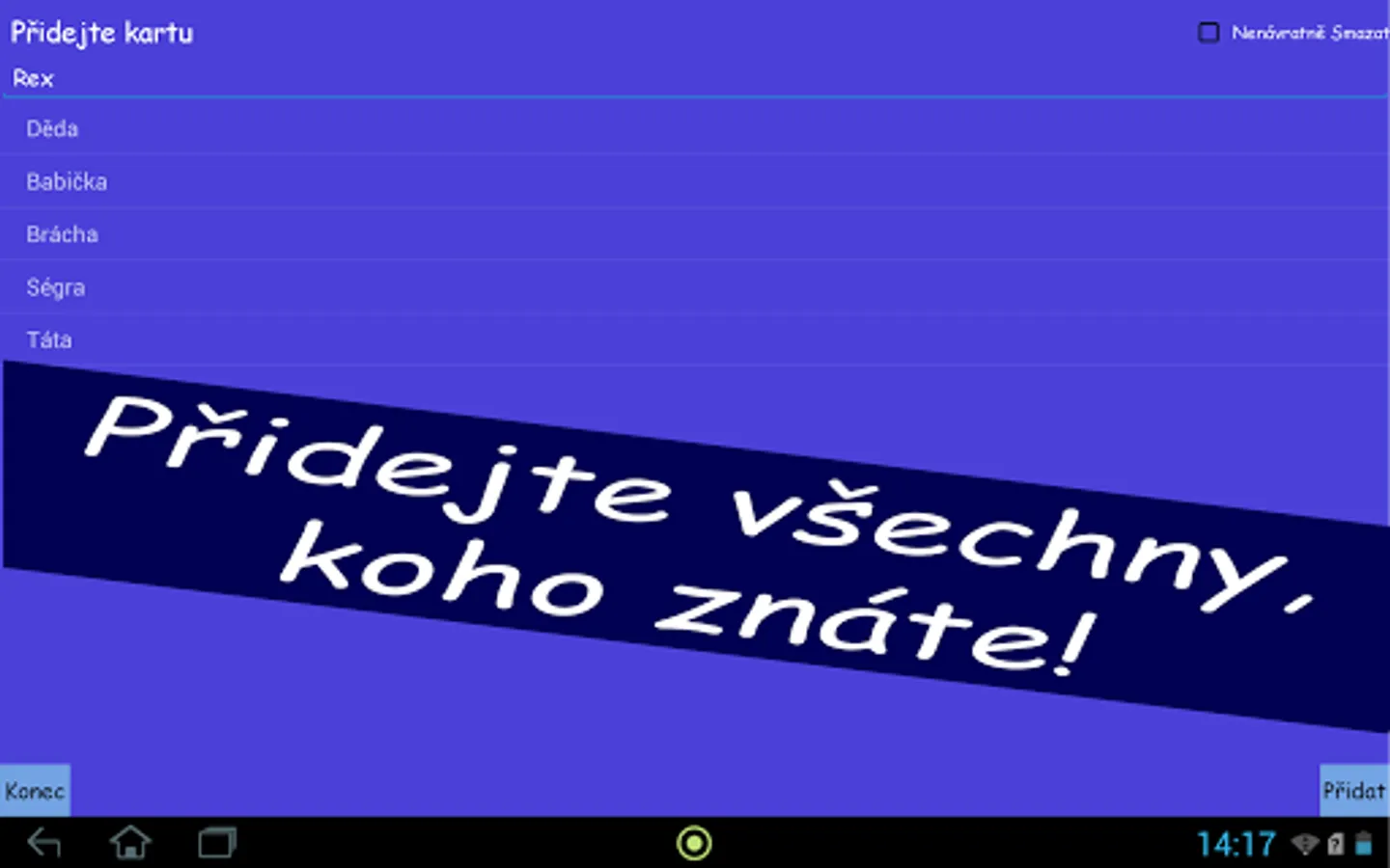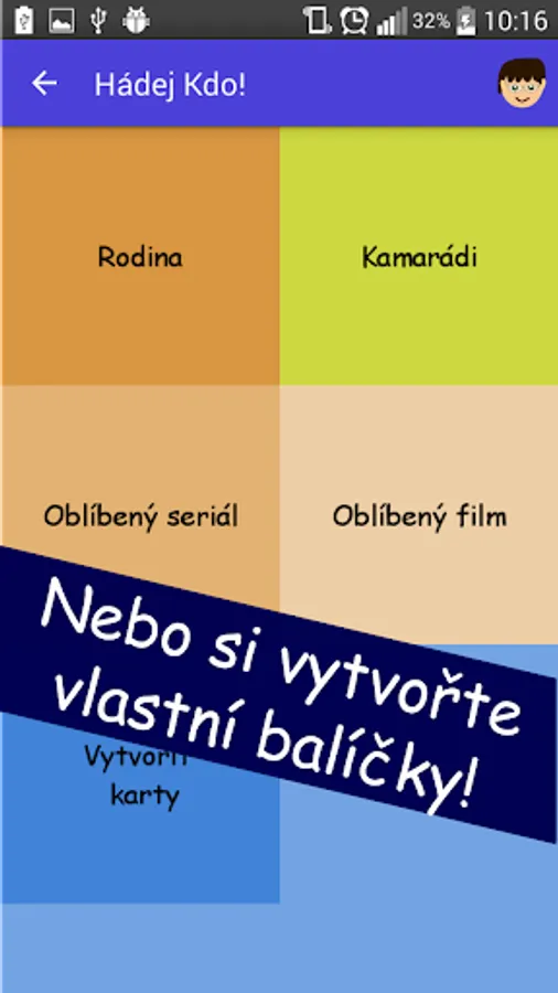 In this game you can test how much you know Czech personalities. Whether actors, singers, and characters from fairy tales, politics and YouTuber !! The entire game is made for the Czech player, with a predominance of Czech personalities who certainly know. If you did not like either one of the pre-built packages, you can create your own package with your own figures! The aim of the game is to guess as many characters in the description of your teammates.