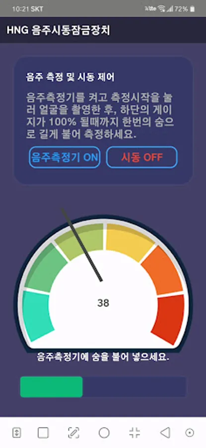 2. Connect the breathalyzer device and the app through BLE to measure the driver's blood alcohol level and