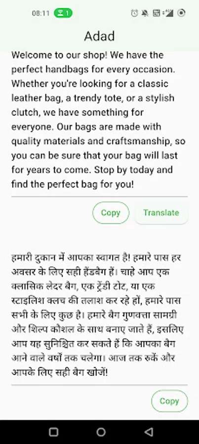 Adad uses generative AI technology to generate product descriptions and ad copies that can be easily translated into Hindi.