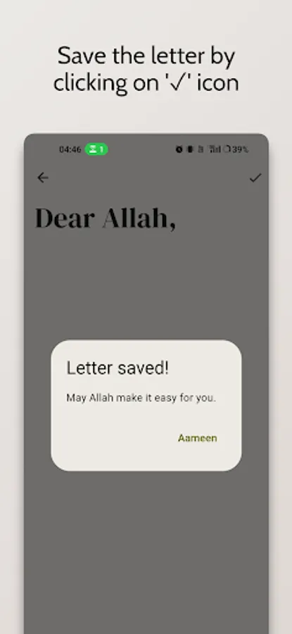 - Write Intimate Letters: "Letter to Allah" provides a serene and uncluttered interface where you can pen down your innermost thoughts. Express your joys, sorrows, desires, and confessions with complete honesty and sincerity.