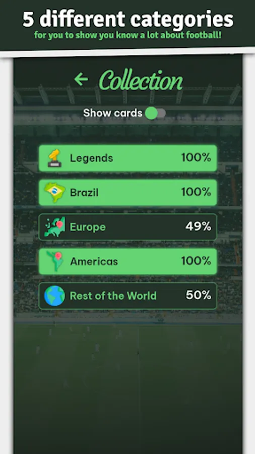 ⚽ 5 categories: Legends, Brazilians, Europeans, Americans, and Rest of the World