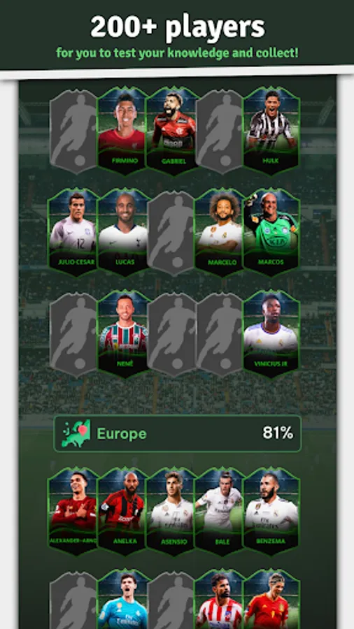This soccer quiz tests how much you know about football players. You can uncover interesting facts about the players, guess, and complete a collection of 200 cards. If you enjoy football quizzes, this fun and relaxing game is for you.