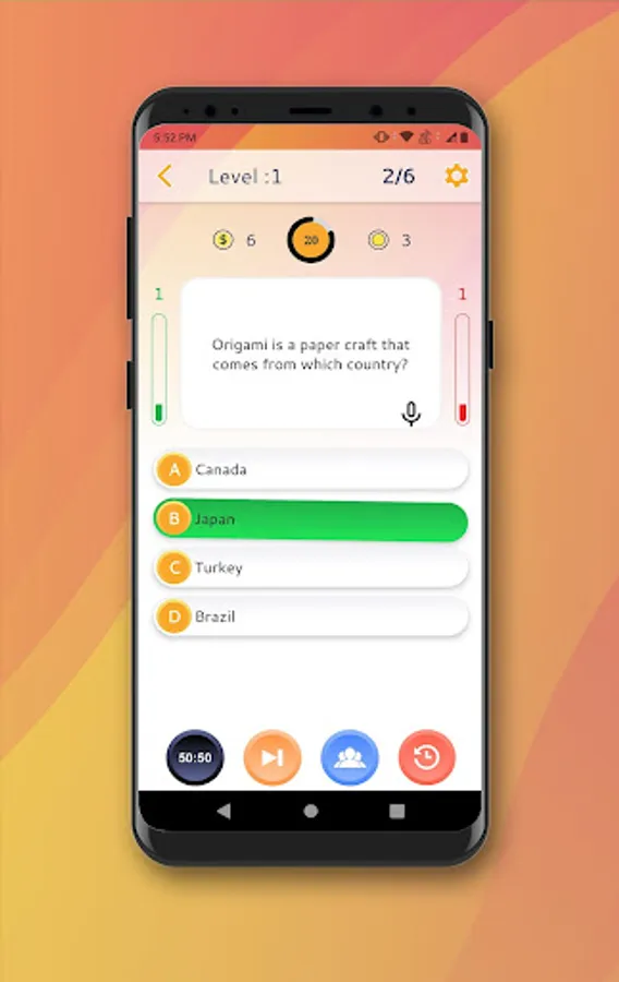 - 50-50: Remove two of the four options. (deduct 4 coins)