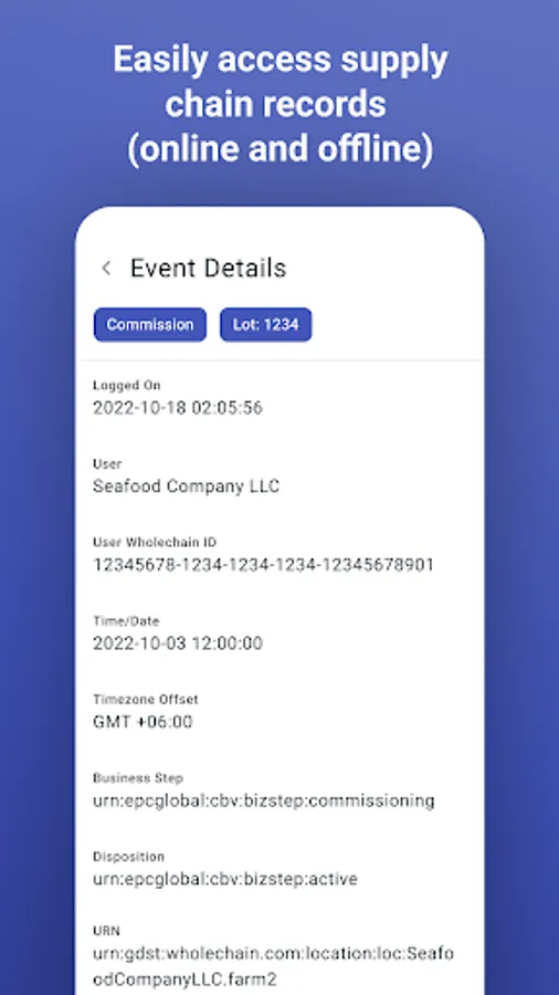 - Trace your supply chain on Wholechain from the field or vessel, even without cell or internet service. Supply chain records are automatically added to the blockchain once online