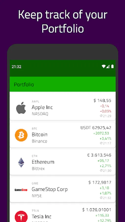 • Enter your holdings into this portfolio tracker to have your portfolio on your homescreen. Never again miss an important development.
