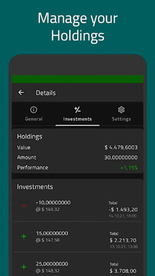 This app allows you to manage your portfolio and have it always display in the background. Whenever you check your phone, a quick glance and you're up-to-date