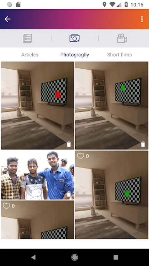 Users upload their own photos,short-film,and article(issue around them).user are the jury here user likes gonna converted in point..50=1` points it can be redeemed into vouchers once it reaches 100 points .And user getting top likes for their photos, short-film, and article (issue around them) will be recognized with rewards and awards state-wise every month and it will be posted in our mobile application as well as on our website.