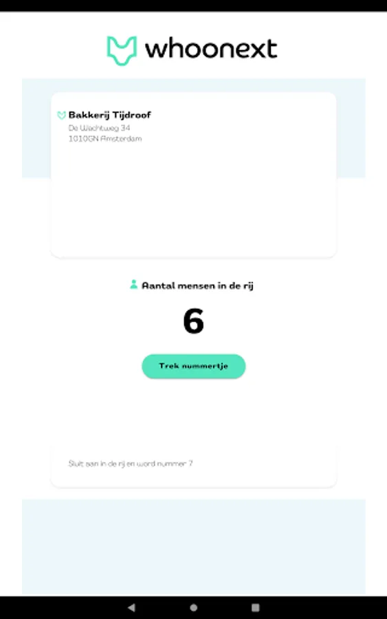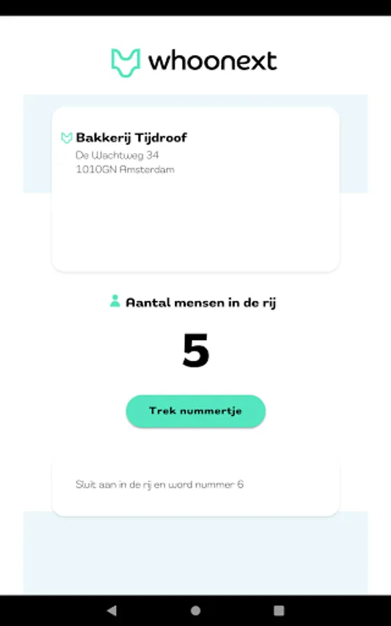 With Whoonext you get your freedom of movement back. Simply scan the QR code at the location where you want to be in the digital queue and immediately see how many people are waiting in front of you. Connect and then do what you want to do. As soon as it is almost your turn, you will receive a signal.