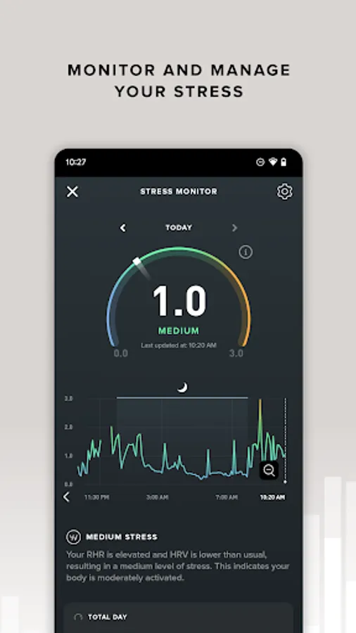 Stress: WHOOP gives you daily insight about your stress, and science-backed techniques to help manage it. Get a real-time stress score from 0-3, and based on your score, choose a breathwork session to either increase your alertness for performance, or increase relaxation in a stressful moment. See your stress trends over time to identify triggers.
