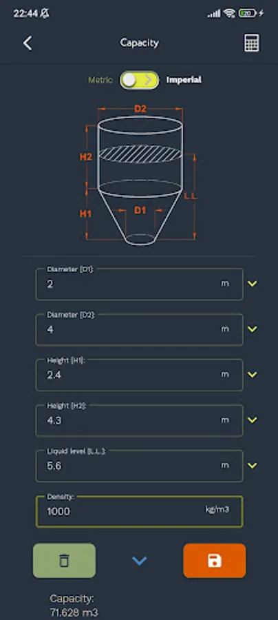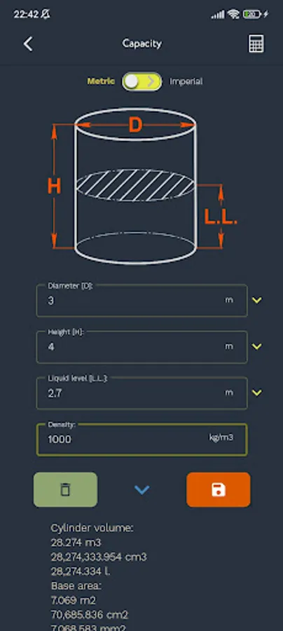 A simple and intuitive interface will allow you to easily calculate the volumes of household, construction or production tanks of the following types - cylindrical, conical, cubic and pyramidal.