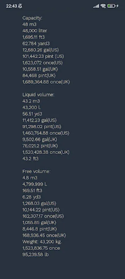 Count in a few clicks the volume of the tank you are interested in, as well as the level and weight of the liquid in it.