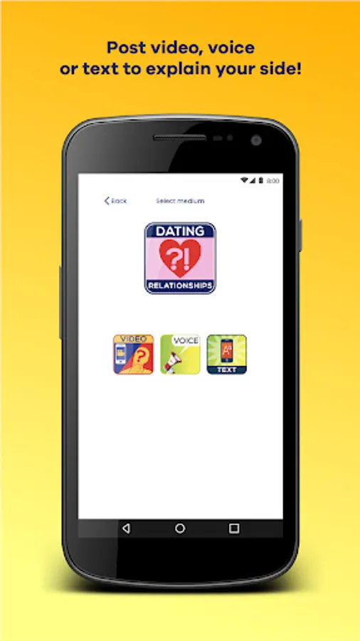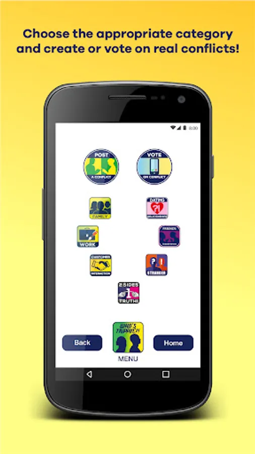 For the first time ever, with the Who’s Trippin’?! app, people will have access to feedback on their conflicts from potentially thousands of strangers who lack any familiarity-bias on who is really “Trippin” in their conflicts! With WT?! users will be able to post via video, voice or text (with option to hide their identities) explaining their side of a conflict and then invite the other side to articulate their side of the conflict in multiple rounds, which will culminate in receiving a verdict from other users' votes!