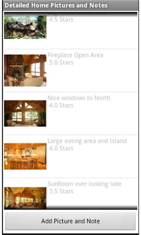 Quickly capture pictures and rate them as you go! Then compare the ratings later to help you decide which house will be better for you!