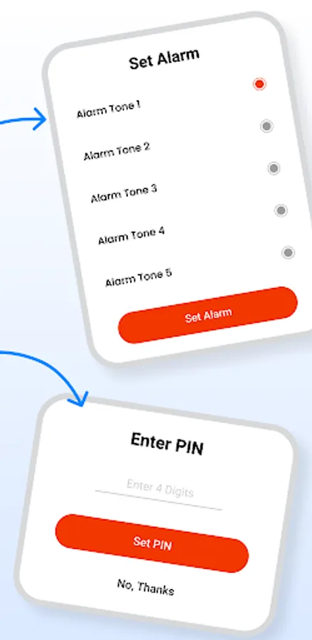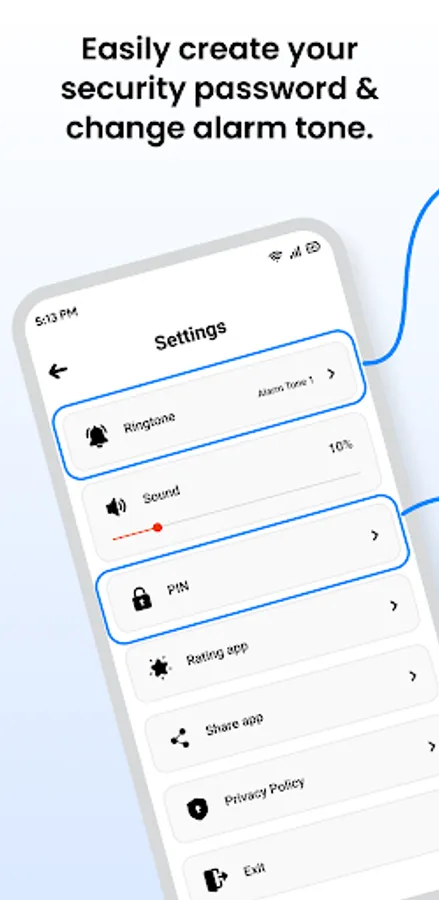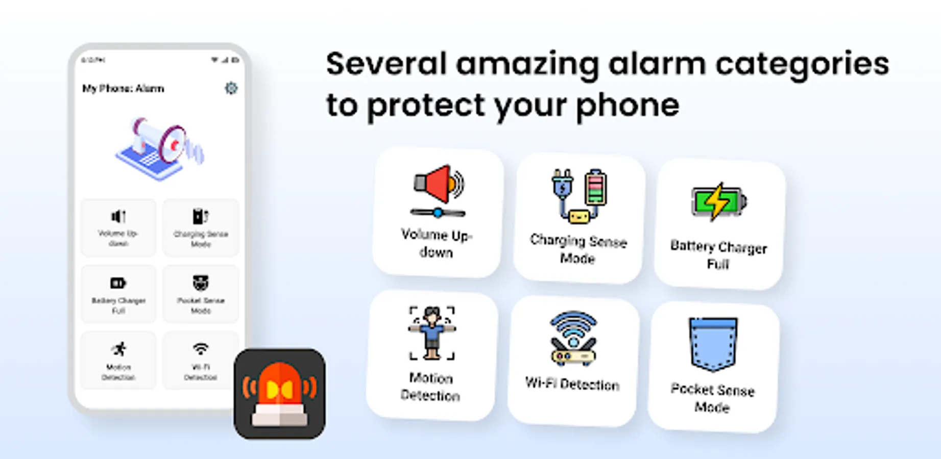 Other features of the app include a flashing light to deter thieves, the option to set a delay for the alarm sound, and the ability to customize the alarm tone by recording or choosing a sound of your choice. Additionally, the app includes an anti-theft alarm to safeguard your phone, a motion detector to activate a touch alarm, and cloud sync to report intruder activity.