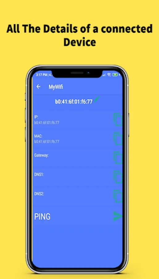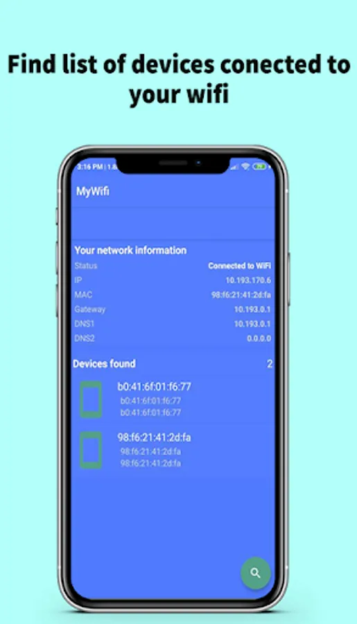 In this application you can see your network information, such as the gateway, DNS1, DNS2, MAC and the manufacturer's name of all connected devices.