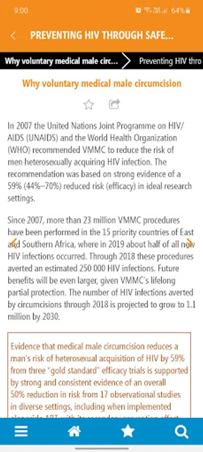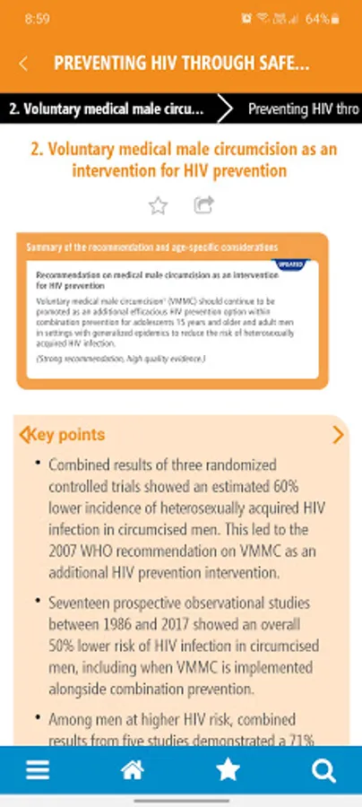 WHO VMMC provides quick and easy to read access to up to date Voluntary Medical Male Circumcision (VMMC) guidelines and resources from the World Health Organization (WHO) Global HIV, Hepatitis, and STIs Programmes. WHO VMMC makes it quicker and easier to view WHO guidance on VMMC on smartphones and tablets, online or off, everywhere and at any time.