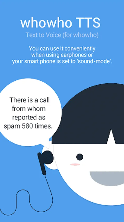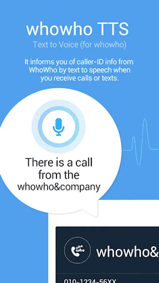 Now, 'whowho TTS’ will tell you the caller's info by 'text to speech' without seeing your phone.