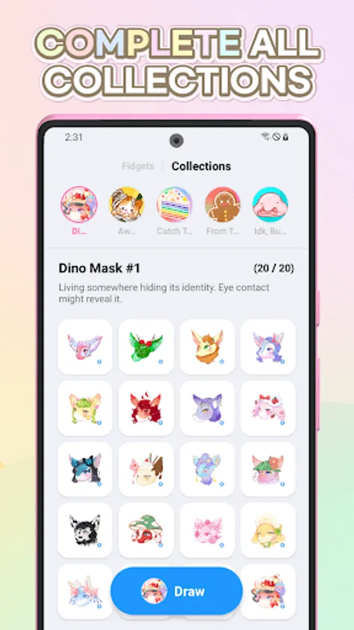 Draw random fidgets using POP reward you earn by trading. New fidgets are updated daily and await to meet their new owners. Be the first among other players to gain the new fidgets by drawing them!