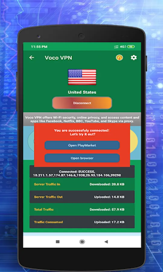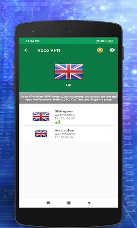 - NO LOGS! That means, that you're absolutely anonymous and protected while using our app.
