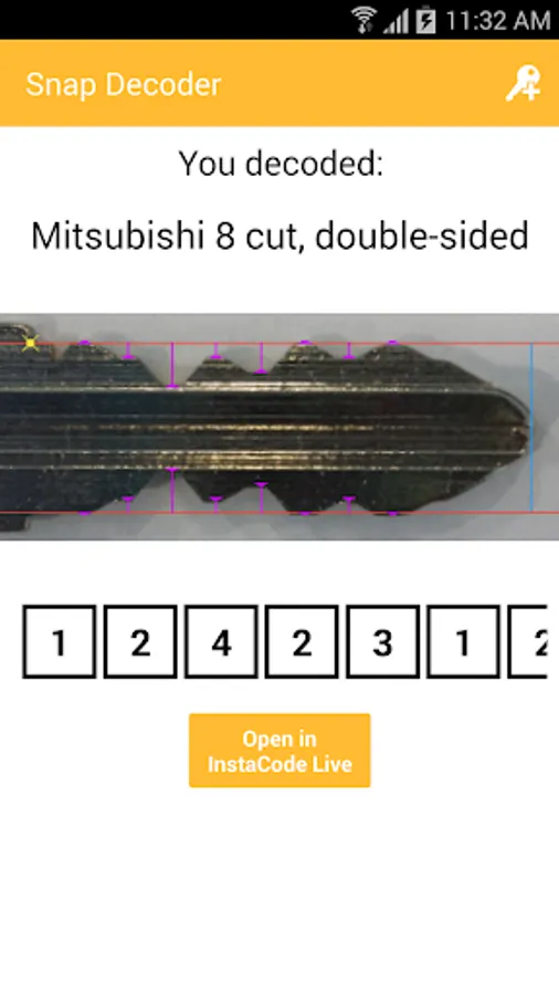 Then, send the bitting to InstaCode Live for Android to convert the bitting into the code and cut the key in a flash (on one of the InstaCode Live for Android supported key machines).