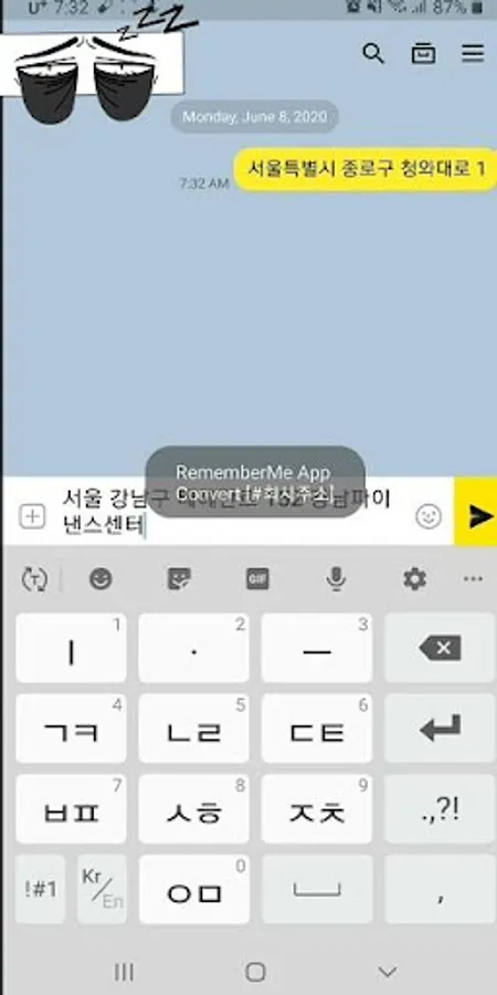 If you enter the saved keyword "@My Address" on the screen, it will automatically change to your full address.