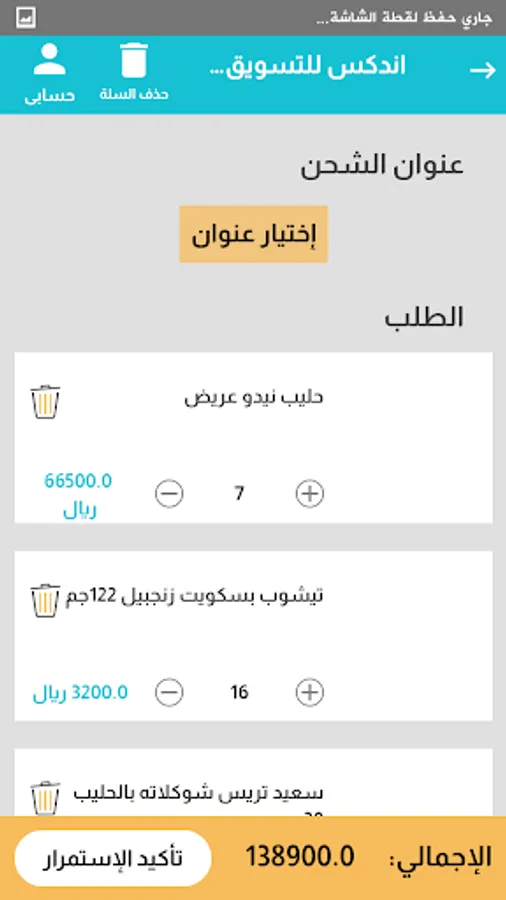 Browse the products through the application and choose the appropriate quantity.