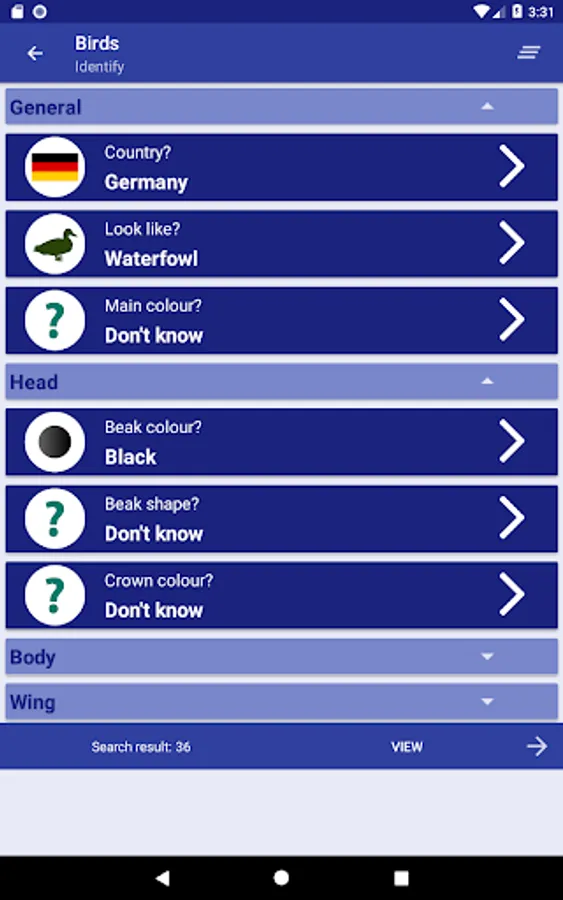 Clear app with more than 500 birds. Based on an extensive set of selection criteria, it is easy to determine which bird is observed.