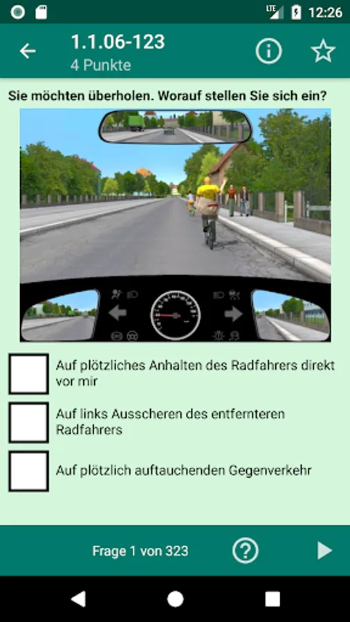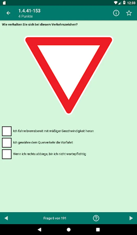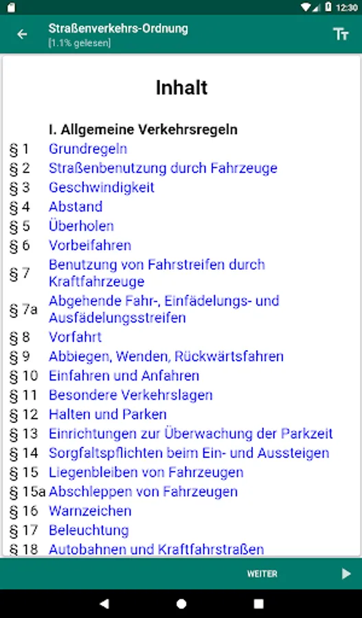 This app makes it easy to learn the German traffic rules and traffic signs. It contains the full text of the Road Traffic -order (Highway Code) as described by the German Road Safety Council (DVR) published. It is a good preparation for the theory test.