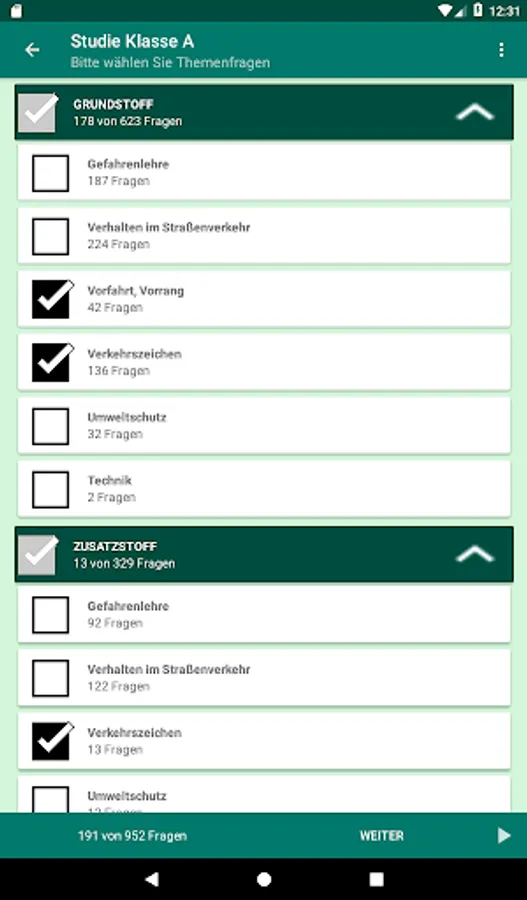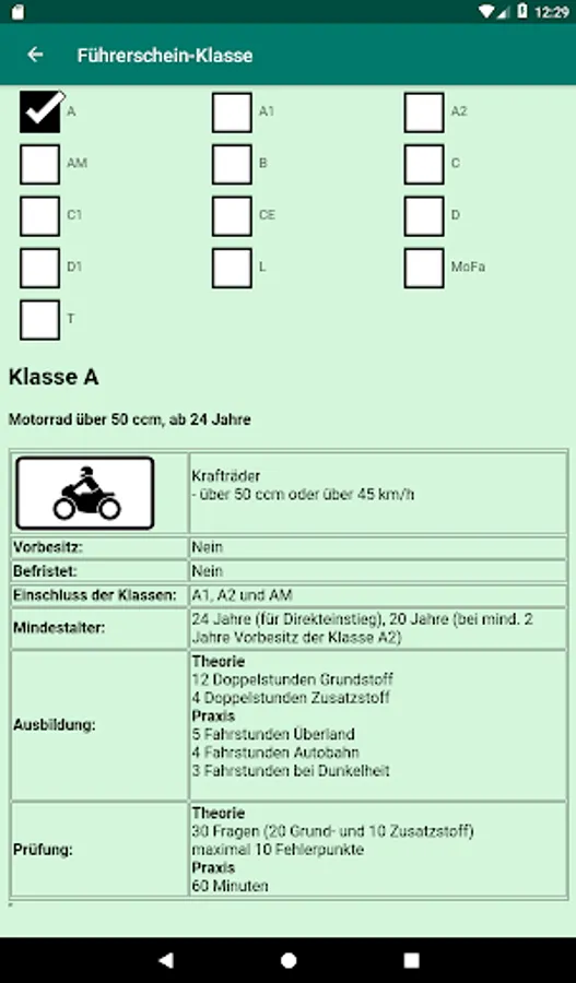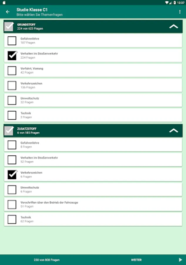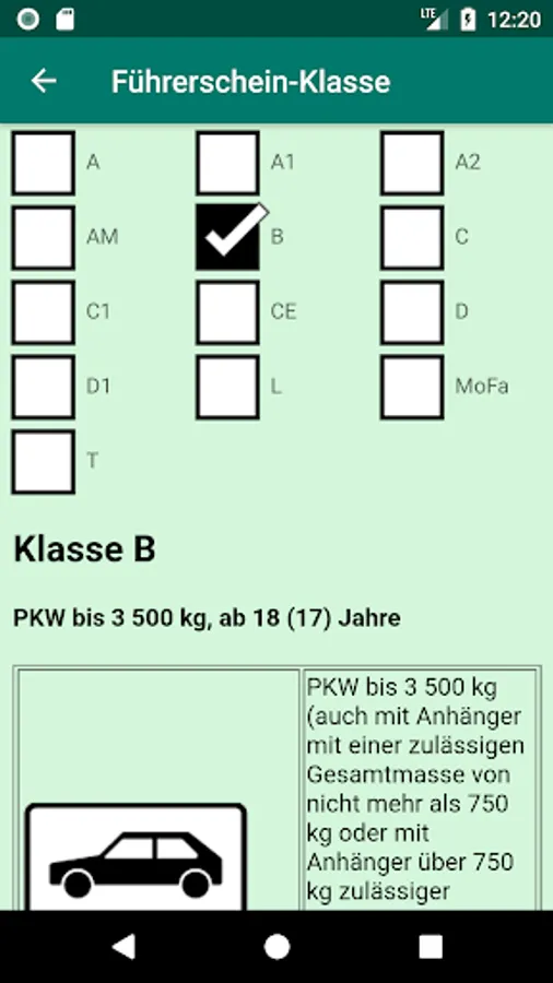 The app contains the official issues of current and valid from 10.01.2017 questionnaire. With this app you will learn easily and efficiently the questions for your driver's license (you can choose between driving license A, A1, A2, AM, B, C, C1, CE, D, D1, L, MOFA and T).