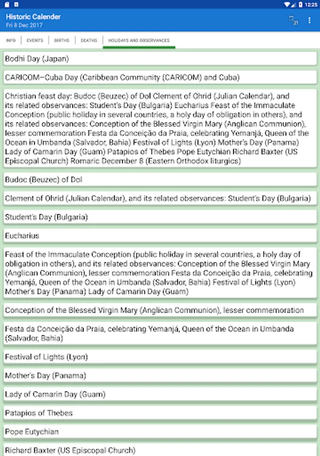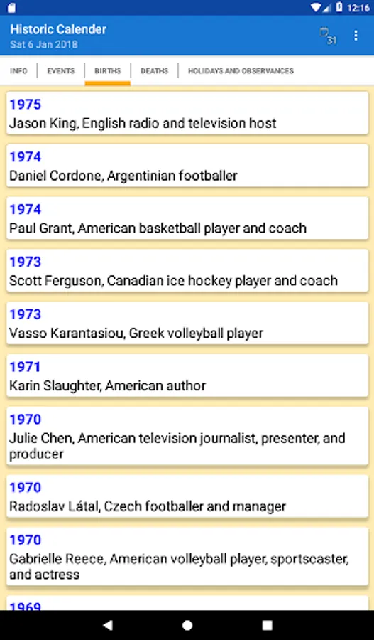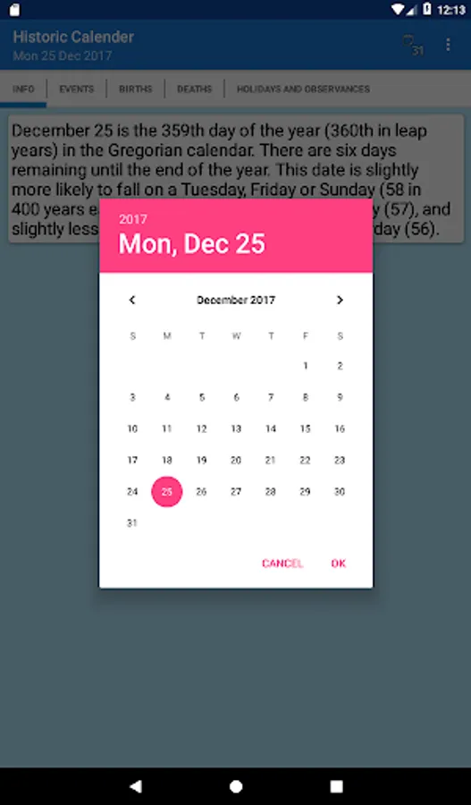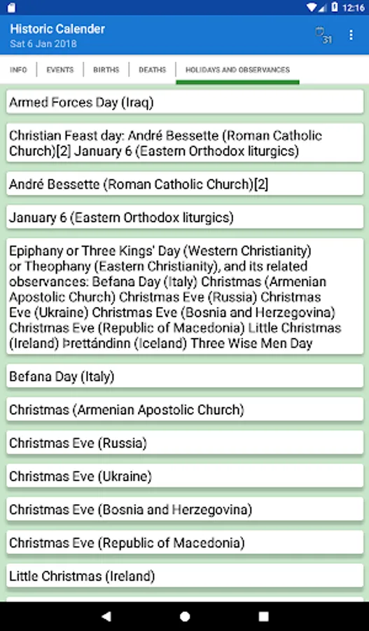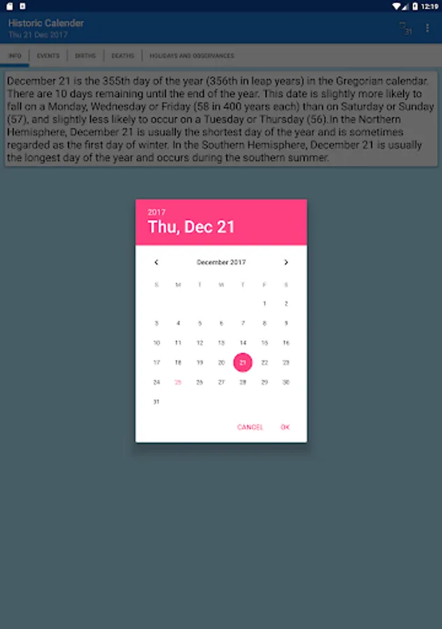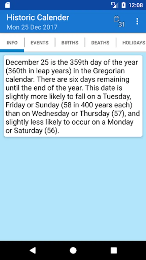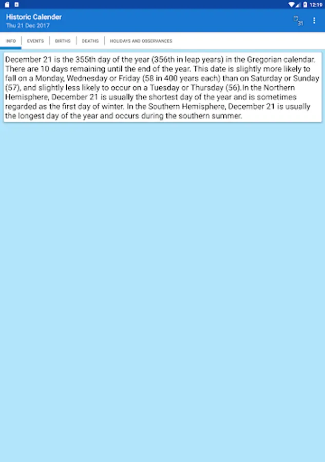 App starts up with the above mentioned information valid for the current day (today). However, you can choose a specific day if desired.