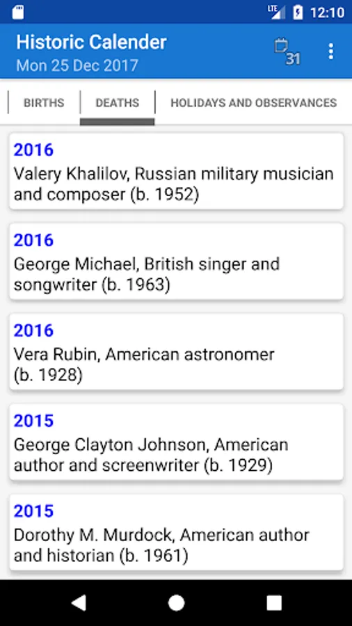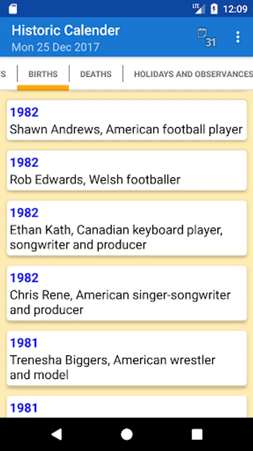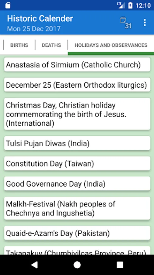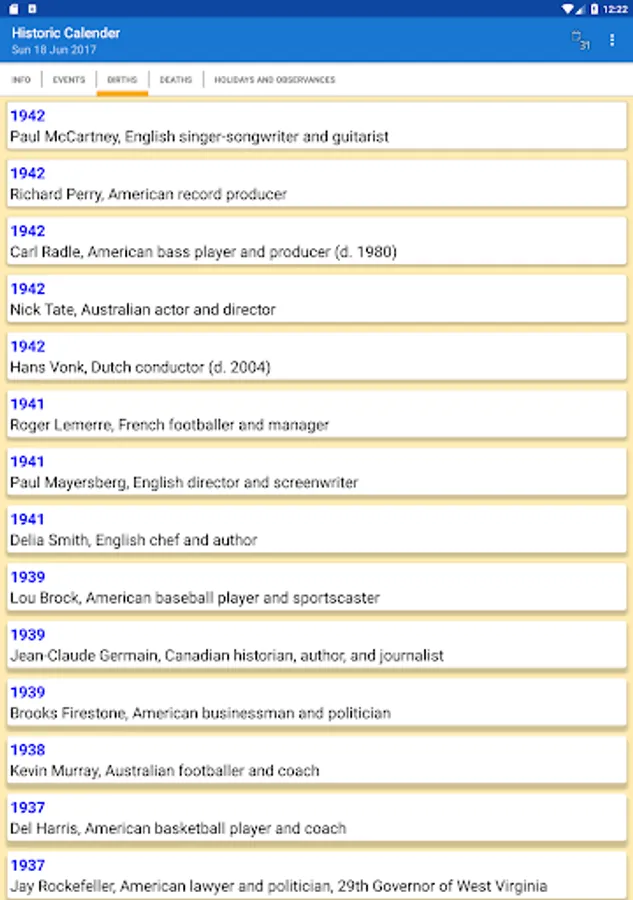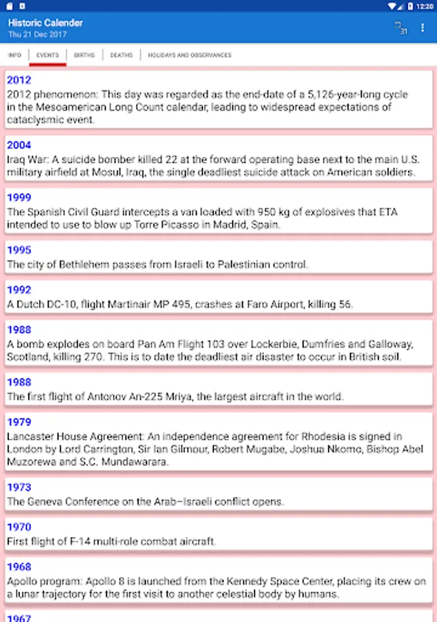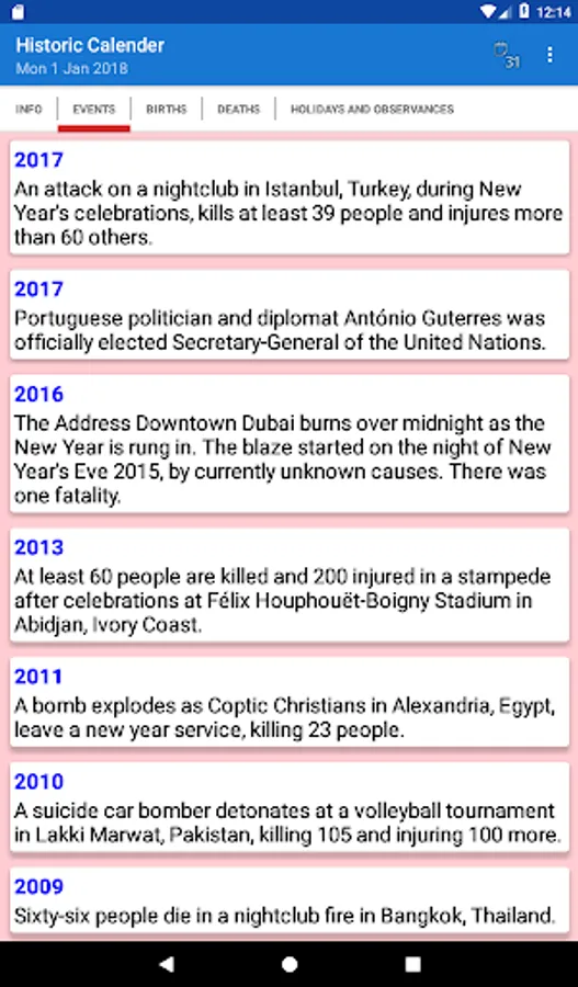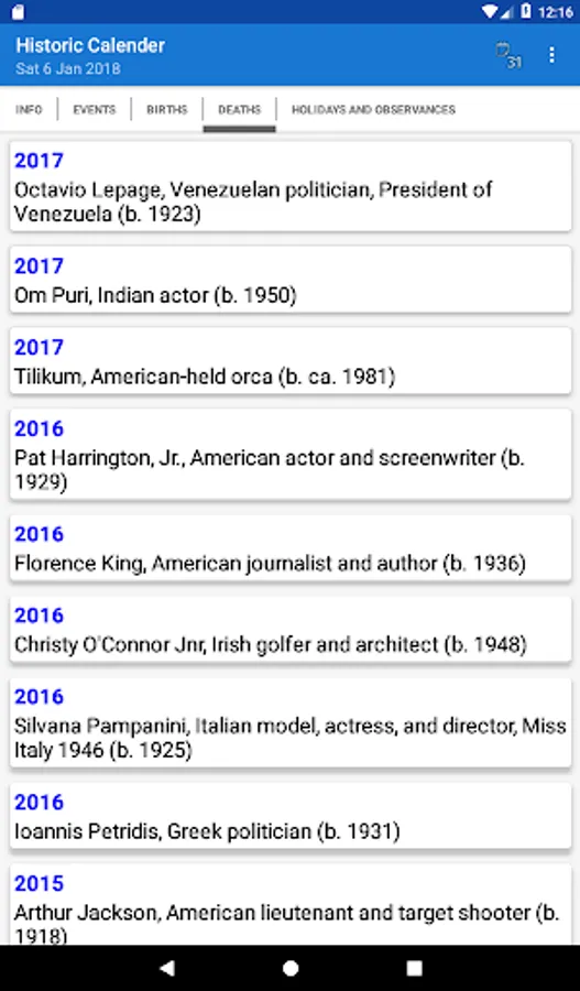 App starts up with the above mentioned information valid for the current day (today). However, you can choose a specific day if desired.
