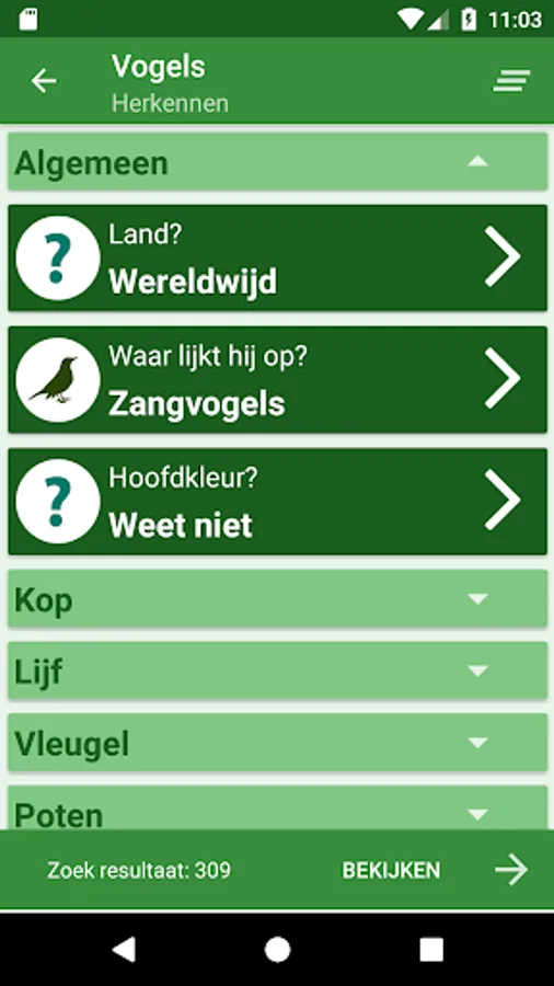 Clear app with more than 500 birds. is detected on the basis of a comprehensive set of criteria is easy to determine which bird.