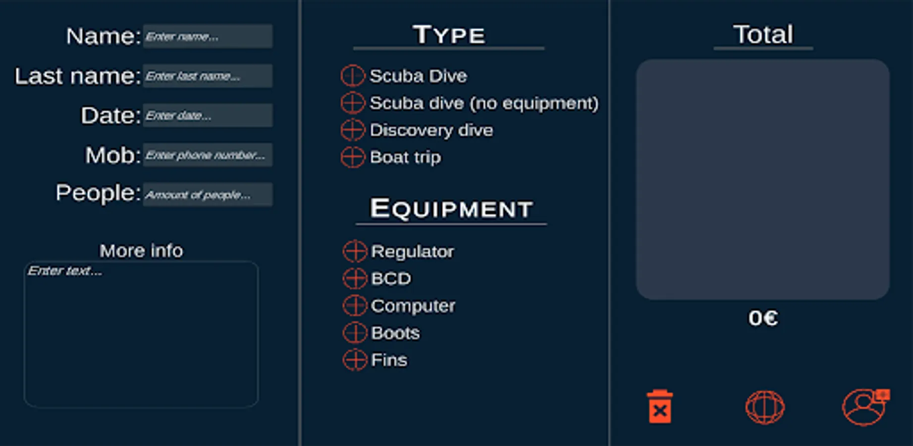 Purpose of this app is to help a diving center know exactly: when there is a reservation for diving, for how many people it is, and what equipment is being rented out.