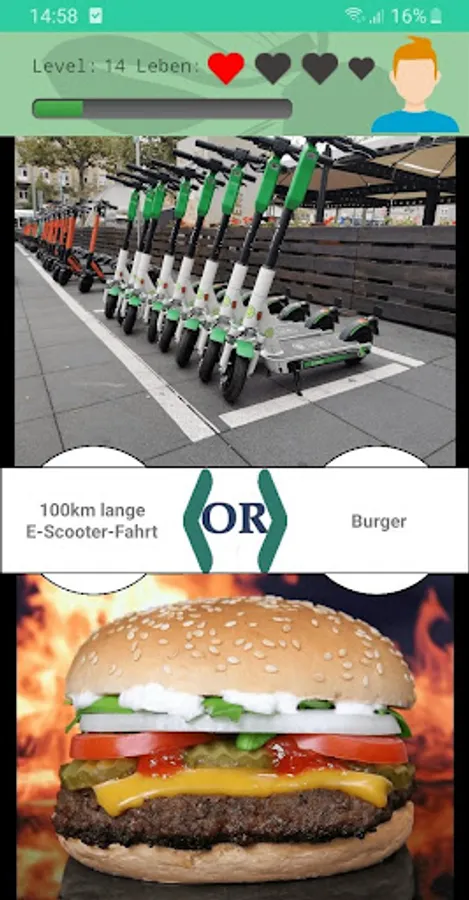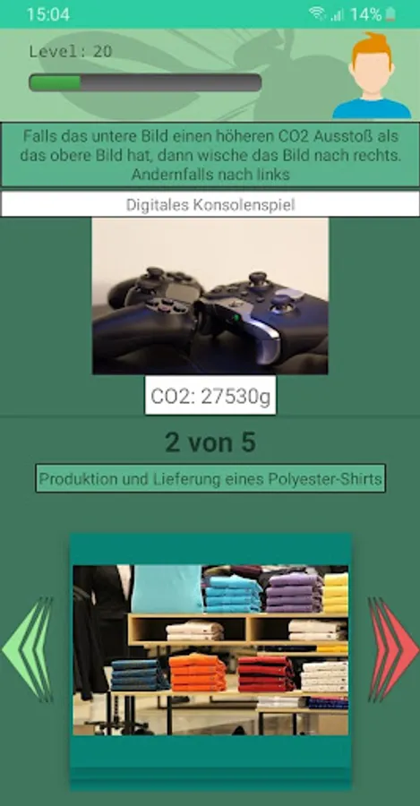 The app includes two game modes where you can choose which of the shown images is more harmful for our climate climate. If you are correct, you will get experience points and the world will become cleaner.